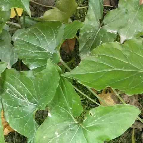 受叶脉限制,叶片上有近园形多角病斑、潮湿时背面有白霉,后期病斑枯死,变褐色至叶片干枯。