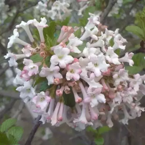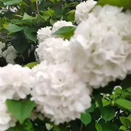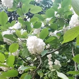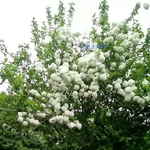 绣球荚蒾 落叶或半常绿灌木,高达4米;树皮灰褐色或灰白色;芽、幼技、叶柄及花序均密被灰白色或黄白色簇状短毛,后渐变无毛。