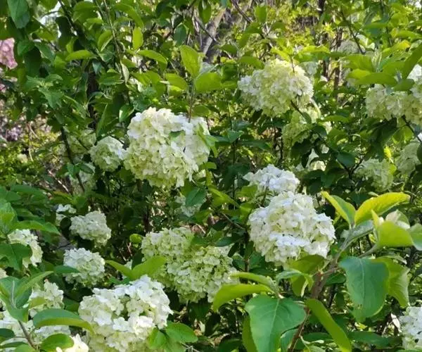 花序为大型白色花朵,形状像绣球,非常美观,是优良观花园林绿化树种。