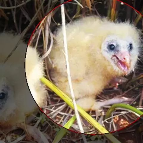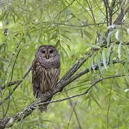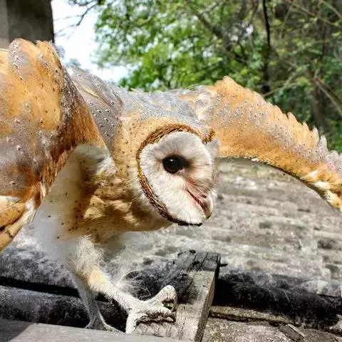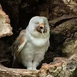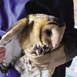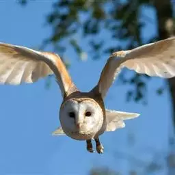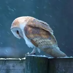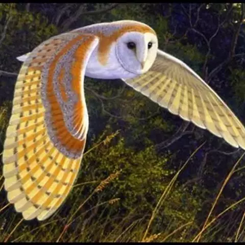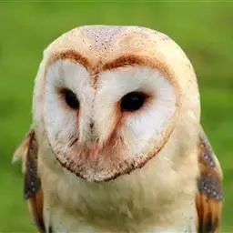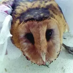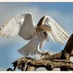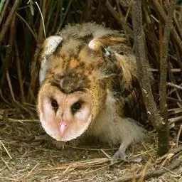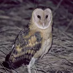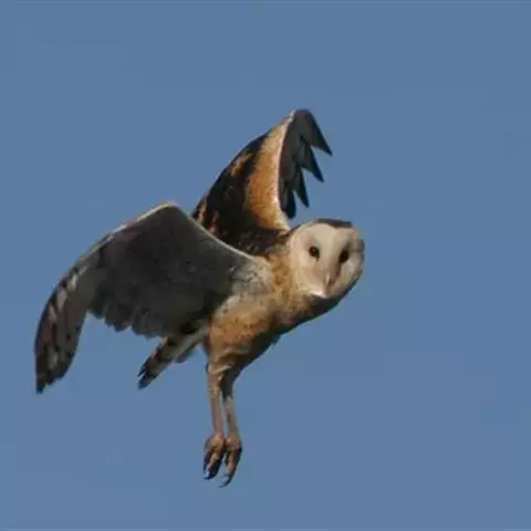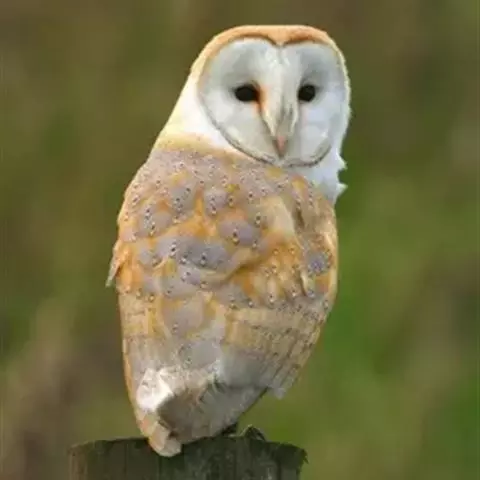 仓鸮(学名:Tyto alba):是鸟纲、草鸮科的中型鸟类,共有32个亚种。体长33-39厘米,翼展85-93厘米,体重470-570克。头大而圆,面盘明显,呈心脏形,白色,四周皱领橙黄色,上体为斑驳的灰色及橙黄色,并具精细的黑色和白色斑点。下体白色,稍沾淡黄色,具暗褐色斑点。