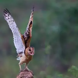 栗鸮:是鸟纲、草鸮科的猫头鹰。体长约29厘米,体重311-360克。是一种中等体型的红褐色鸮。…