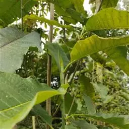 3、落叶乔木,高6-10m。树皮灰白色,近光滑。小枝淡褐色,初时有毛,后变无毛。顶芽卵形,被淡黄色长绢毛。单叶互生;叶柄长1-2.5cm;叶片倒披针形、倒披针状长椭圆形或长椭圆状倒卵形,长6-14cm,宽3-7cm,先端细尖或钝圆,稀短尾状钝尖,基部楔形,全缘,上面深绿色,无毛,下面淡绿色,被极细短毛,羽状侧脉7-10对。花白色,先叶开放,花梗粗长,直立,长1-1.5 cm,密被淡黄色长绢毛;花被9,外轮3片较小,膜质,萼片状,内两轮白色,基部带红色;雄蕊多数,圆柱状卵形;心皮多数,每心皮有2个胚珠。聚合果圆柱形,长5-8cm,直径1.8-2.5cm,下垂,幼时绿色,稍带紫红色,熟时暗紫黑色,果梗长约1cm,密生黄色长绒毛。花期5-6月,果期8-9月。