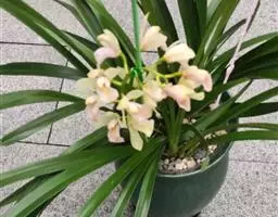 先在盆底排水孔上垫好瓦片,再垫上碎石子、炉渣等物,约占盆的1/5,其上铺一层粗沙,然后放入培养上。最好将兰苗放入盆中,将根理直,让其自然舒展,填土至一半时,轻提兰苗,同时摇动花盆,使兰根与盆土紧密结合,继续填土至盆沿,压紧。上留约3厘米沿口,以便施肥与浇水。