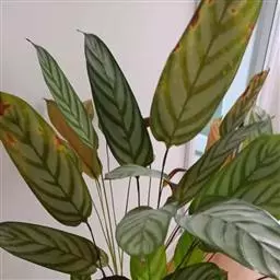 花叶竹芋:竹芋科,竹芋属匍匐状分枝草本植物,植株矮小,高可达40厘米,叶片长圆形、椭圆形至卵形,基…