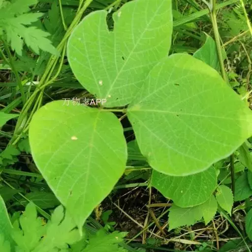葛〔拉丁学名:Pueraria lobata(Willd.)Ohwi〕:豆科,葛属多年生草质藤本植物,块根肥厚圆柱状,叶互生,项生叶片菱状卵圆形,总状花序,腋生,蝶形花冠,紫红色。荚果长条形,扁平,密被黄褐色硬毛。7-8月开花,8-10月结果。