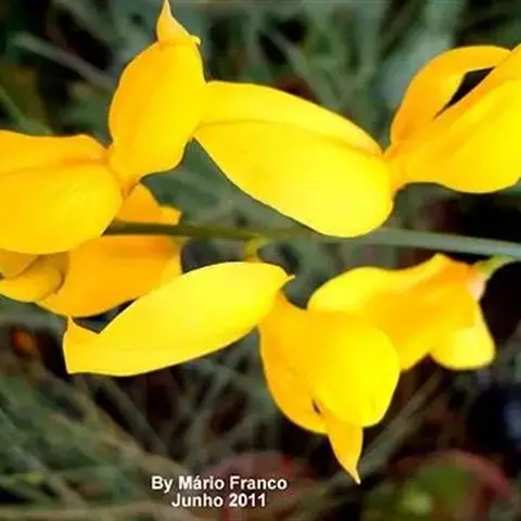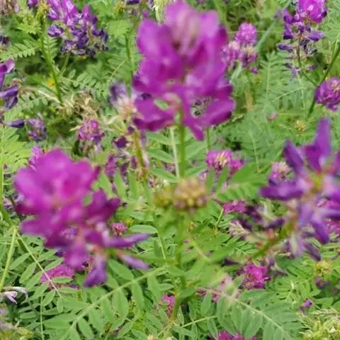 总状花序长15-30厘米,中部以上有颇密集的花;苞片线状披针形至线形,远比小苞片长,早落;小苞片卵形,长不及2毫米;花2-3朵聚生于花序轴的节上;花萼钟形,长8-10毫米,被黄褐色柔毛,裂片披针形,渐尖,比萼管略长;花冠长10-12毫米,紫色,旗瓣倒卵形,基部有2耳及一黄色硬痂状附属体,具短瓣柄,翼瓣镰状,较龙骨瓣为狭,基部有线形、向下的耳,龙骨瓣镰状长圆形,基部有极小、急尖的耳;对旗瓣的1枚雄蕊仅上部离生;子房线形,被毛。
