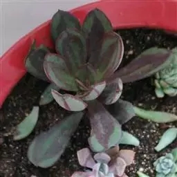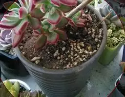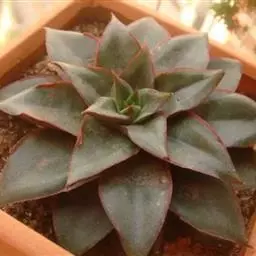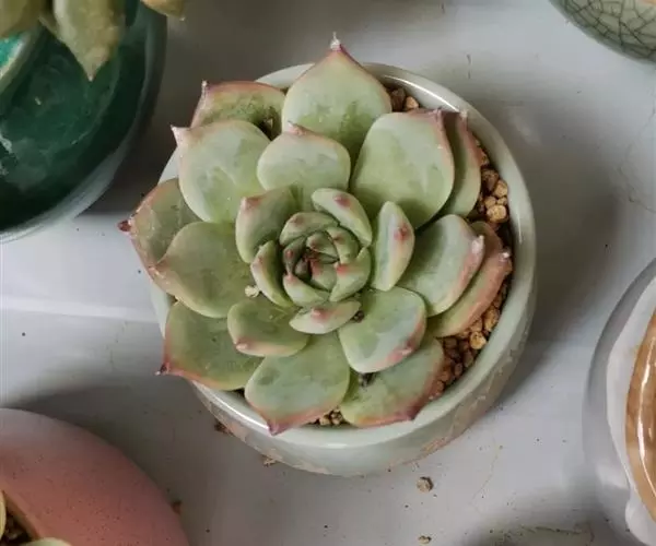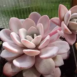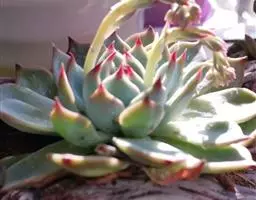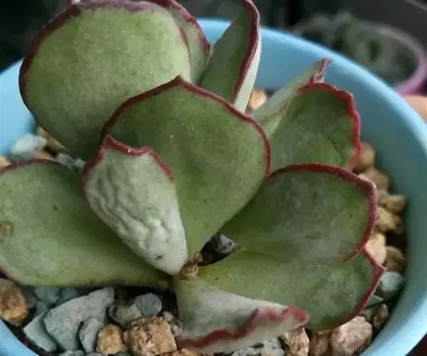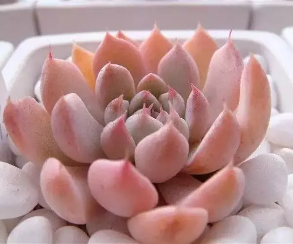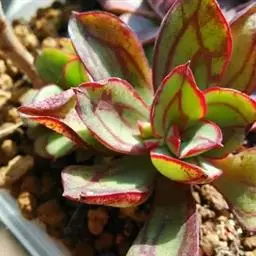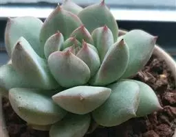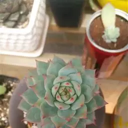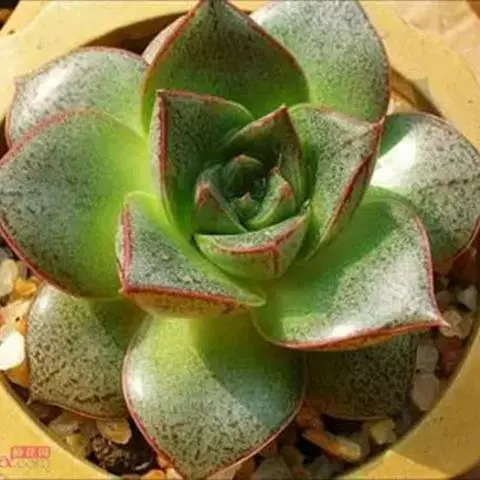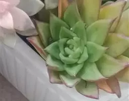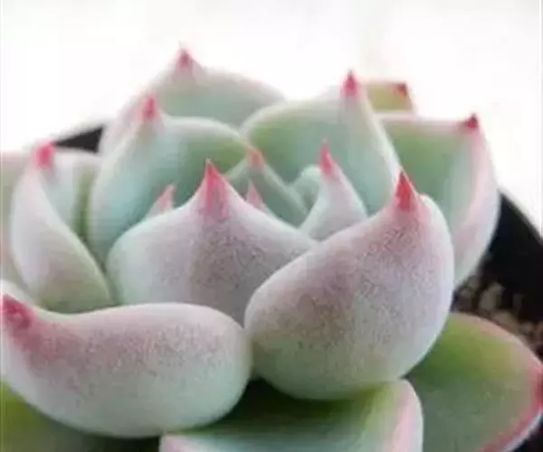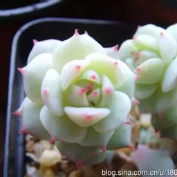 吉娃莲,景天科拟石莲花属,别名:吉娃娃(因为常与狗名混淆,所以大多数情况只叫吉娃莲), 原产于墨西哥奇瓦瓦州,生长在空气流通较好、日照充分的山坡上。吉娃莲,植株小型,无茎的莲座叶盘非常紧凑。卵形叶较厚,带小尖,蓝绿色被浓厚的白粉,叶缘为美丽的深粉红色。花序先端弯曲,钟状,红色。栽培不太困难,夏天不能浇过多的水。叶尖的红色特别美丽,是一种观赏性很强的多肉植物。