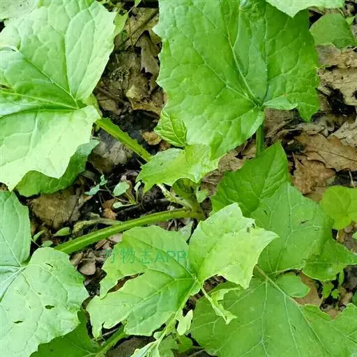 根状茎匍匐,直径1—1.5厘米,自节上生出多数的纤维根。茎直立,高30—100厘米,中部以上分枝,稀自基部分枝,分枝纤细、斜上,或基部的分枝粗壮,被蛛丝状绒毛,有长2—4厘米的节间。根生叶或有时下部的茎叶花期凋落;下部茎叶肾形或圆肾形,长(3)5—8厘米,宽(4)7—12厘米,基部心形,顶端急尖或钝,边缘有不等形的波状大牙齿,齿端有突尖,叶上面沿脉被尘状柔毛,下面密被蛛丝状毛,基出三脉,叶柄长5—17厘米,宽0.3—1厘米,有狭或较宽的翼,翼全缘或有不规则的钝齿;中部茎叶三角状圆形,长7—13厘米,宽8—14厘米,向上的叶渐小,三角状卵形或菱状倒卵形,最上部的叶长约1厘米,披针形或线状披针形,无柄,全缘。头状花序排成狭或宽大的圆锥状花序,花梗短,被白色绒毛,花后花梗伸长,长2—6厘米,密被稠密头状具柄腺毛。总苞半球形,宽2.5—5毫米;总苞片5—7个,宽卵形,长2—3.5毫米,全缘,果期向外反曲。雌花白色,长1.5毫米,檐部比管部长,裂片卵状长椭圆形,两性花淡白色,长2毫米,檐部短于管部2倍。瘦果棍棒状,长6—8毫米,被多数头状具柄的腺毛。花果期6—11月
