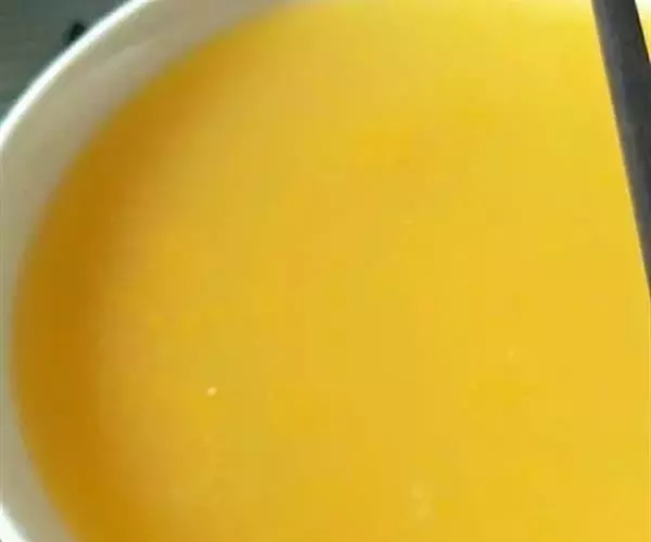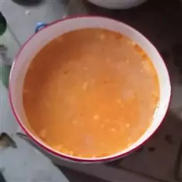 2、将南瓜粉搅匀放粥内,续煮20分钟,加入冰糖调味。