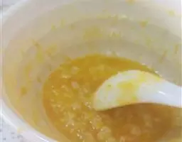 3. 将南瓜泥放在煮好的粥上,一边搅拌一边食用即可。