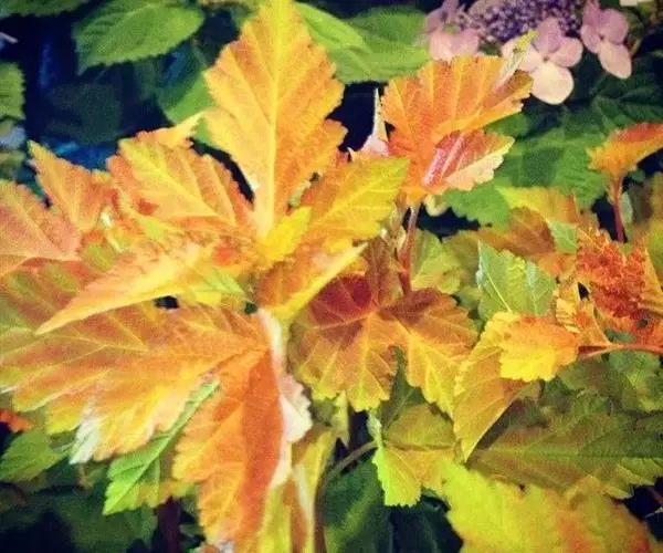 风箱果树形开展,花色素雅、花序密集,果实初秋时呈红色,具有较高的观赏价值,可植于亭台周围、丛林边缘及假山旁边。