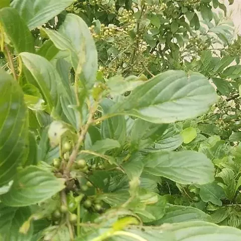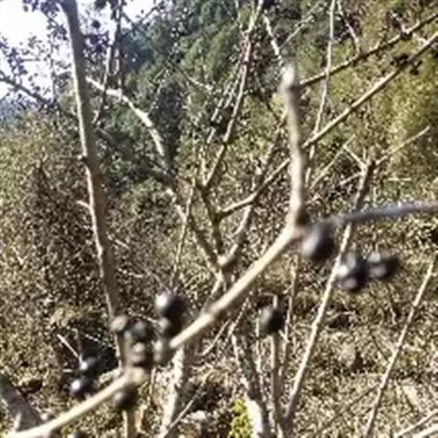 核果球形或倒卵状球形,直径约6-7毫米,基部有宿存的萼筒,具3-4个分核,成熟时黑色;果梗长1.3-2.3厘米,无毛;种子矩圆状卵圆形,淡褐色,背面具长为种子4/5或全长的纵沟。花期5-6月,果期6-9月。