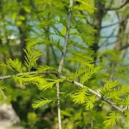 落羽杉 Rich.),杉科落羽杉属木本植物。树干尖削度大,基部通常膨大,具膝状呼吸根,树皮棕色,…