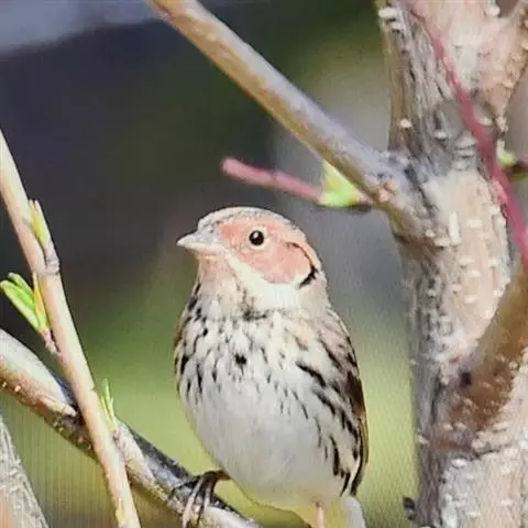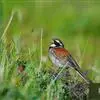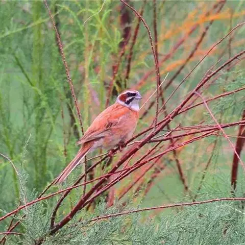 栗斑腹鹀:属小型鸣禽。体重19-25克,体长145-167毫米。头顶至背栗红色,眼先和颧纹黑褐色,…