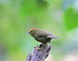 • 红头穗鹛是雀形目画眉科伪穗鹛属鸟类。成鸟额至头顶或至枕部为棕红色;额基和眼先淡灰黄色;眼圈隐隐泛黄白色;颊和耳羽灰黄色缀有橄榄褐色;其余上体连同翼和尾的表面为橄榄绿褐色;飞羽和尾羽暗褐色,外缘沾茶黄色;下体颏、喉和胸浅灰黄色,具细黑羽干纹;腹和尾下覆羽橄榄褐绿色;腋羽和翼下覆羽淡灰黄色;虹膜棕红色;上喙角褐色,下喙暗黄色;脚黄褐色。红头穗鹛分布于亚洲东南部地区;在中国分布于秦岭及以南的广大地区,包括长江流域、华南、华中和西南地区。栖息于山地森林中。常单独或成对活动,有时也结小群或与棕颈钩嘴鹛等其他鸟类混群,在林下灌丛间来回跳跃穿梭。主食鞘翅目、鳞翅目、直翅目、膜翅目、双翅目和半翅目等昆虫,偶食少量植物种实。繁殖期在4-7月,营巢于茂密灌草丛或竹丛中。窝卵数4-5枚,卵白色且具棕斑,雏鸟晚成;雌雄亲鸟轮流孵卵,共同育雏。红头穗鹛为食虫益鸟,被列入中国林业局2000年8月1日发布的《国家保护的