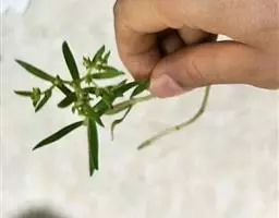 六叶葎 Ehrend. & Schönb.-Tem. ex R. R. Mill)是茜草科拉拉藤属的一年生草本。常直立,有时披散状,高10-60厘米左右,近基部分枝,有红色丝状的根;茎直立,具疏短毛或无毛;叶片薄,纸质或膜质,长圆状倒卵形、倒披针形、卵形或椭圆形顶端钝圆而具凸尖;聚伞花序顶生和生于上部叶腋,苞片常成对披针形,花冠白色或黄绿色,裂片卵形,雄蕊伸出;果近球形,单生或双生,密被钩毛;花期4-8月;果期5-9月。六叶葎分布于中国北、山西、陕西、甘肃、江苏、安徽、浙江、江西、河南、湖北等地,印度、巴基斯坦、尼泊尔、锡金、不丹、缅甸、日本、朝鲜、俄罗斯均有栽培。生于海拔920-3800米的山坡、沟边、河滩、草地的草丛或灌丛中及林下。六叶葎味甘,性平,具有清热解毒、利尿消肿的功效,可用于治疗尿路感染、赤白带下、痢疾、痛肿、跌打