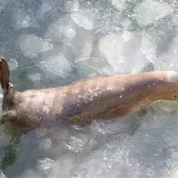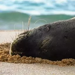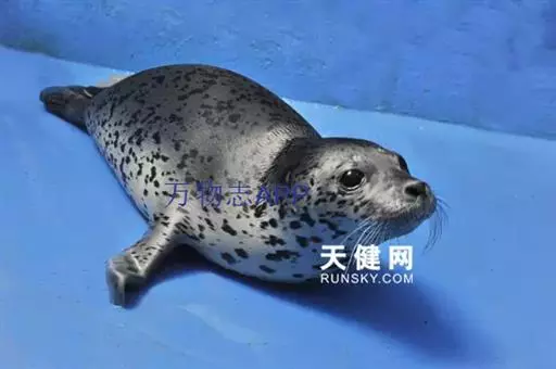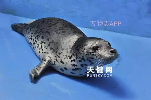 斑海豹的身体肥壮而浑圆,呈纺锤型,体长约1.2~2米,体重约100公斤,全身生有细密的短毛,背部灰黑色 水中的斑海豹 并布有不规则的棕灰色或棕黑色的斑点,腹面乳白色,斑点稀少,雄兽略大于雌兽。头圆而平滑,眼大,吻短而宽,唇部触口须长而硬,呈念珠状,感觉灵敏,是它觅食的武器之一。没有外耳廓,也没有明显的颈部,四肢短,前后肢都有五趾(指),趾间有皮膜相连,似蹼状,形成鳍足,指、趾端部具有尖锐的爪。前肢狭小,后肢较大而呈扇形,其趾外侧长而内侧短,尾短小,仅有7~10厘米长,夹于后肢之间,联成扇形。前肢朝前,后肢朝后,不能弯曲,游泳的姿势就像人伸开手脚俯卧的样子,这种体型十分适宜在大海中游泳。