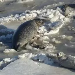 斑海豹的食性较广,主要取决于季节、海域及所栖息的环境。在黄、渤海,春夏季捕食鲱、玉筋鱼、小黄鱼等,秋冬季节则多以梭鱼为食。在日本海、阿拉斯加的近海等地还捕食鳕、鲑等鱼类。其他食物包括各种甲壳 斑海豹活动在浮冰上 类、头足类等海洋性动物。