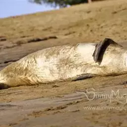 斑海豹通常选择在夜间生产,斑海豹产前会在水中较快的游动,并上岸寻找合适的生产地点。产前1小时左右斑海豹腹部会出现规律性的抖动,呼吸加深。生产时,首先阴部突出白色囊状物,喷出羊水,一般情况下胎儿头部先产出,但也有胎儿后肢先产出的情况,间歇1~2 分钟,胎儿尾鳍便很快产出,整个产程约10~20 分钟,胎儿和胎盘一般同时产出,也有胎盘滞后20~30 分钟产出。斑海豹每胎产1仔,刚出生的幼海豹全身覆白色细而长的绒毛,一般体重6.5~9.5 kg,体长60~75cm。通常幼海豹在出生16天左右便开始脱掉白色长毛,经5~10 天时间完成换毛,换成粗而短,色泽光亮、斑点明显的毛衣。其脱毛顺序一般情况为:头、四肢→腹部→颈部、臀部→腹部两侧→背部,也有的幼兽是先脱背部胎毛,再脱腹部两侧胎毛。2009年繁育成功的7头斑海豹中3头雌、4头雄,雌性均在第15天开始换毛;4头雄性幼海豹中3头从第15天,1头从第18天开始换毛。