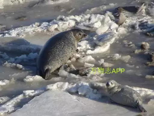 斑海豹 斑海豹发情时精神非常旺盛,在水中不停地游动,但食量减少或拒食,雄兽的阴茎外露,雌兽的阴门红肿。它们在水中相互追逐,时而上岸,时而入水,并发生阵阵叫声。交配需要沉入深水中进行,此时雌兽不动,雄兽的后鳍摆动,交配后双双回到水面上。雌兽的怀孕期约为8~10个月,每年2月产仔,分娩时需要爬到岸边或冰块上,每胎只产1仔。但在产仔前,雌兽会在浮冰上挖掘出一个巢穴,产仔时躲在巢穴中,迅速产下的幼仔躲避危险的办法也是潜入海中,或者在栖息的浮冰上挖穿一个大洞,以便随时潜入水中逃走。幼仔初生时体重约为5~6公斤,全身披着白色的胎毛,被人们称作“白色的小海豹”。这种白色的胎毛在冰雪的环境中是一种保护色,使它们不易被天敌发现,但也因为能吸收大量水分,不利于它们在水中游泳。因此,幼仔在出生后的第16天后皮下脂肪渐渐形成时,就开始脱换胎毛。大约需要9天的时间,胎毛便全部脱换完毕,换成了短、粗、硬,光亮而有斑点的新毛。这种新毛不易淋湿,它们一爬上岸水就直往下淌,不会在皮肤上结冰。幼仔出生几分钟后就表现出一种本能的跟随性,它在尾随雌兽的时候几乎不停地发出叫声,这种声音显然是为了与雌兽保持联系,而且能够同时在空气和水传播,直到断奶后叫声才停止。雌兽也特别留意幼仔的行动,即使在水中也能仰头向后看。如果遇到紧急情况,雌兽会将身体一弹,腾空而起用肥胖身体的重力使浮冰砸破,然后同幼仔一起落水而逃。经过一个月左右的哺乳期,幼仔的体重增至20千克以后,就开始独立生活了。西太平洋斑海豹性成熟的年龄为3~5岁,也有2岁就达到性成熟的,性成熟后生长趋于缓慢,雄性15岁,雌性10岁后就不再增长。