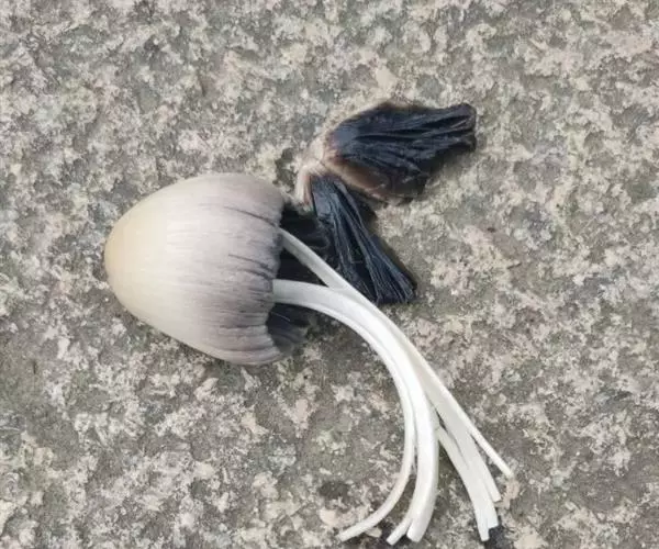 触角1对,羽毛状,基部粗,末端渐细,雌蛾的触角灰色,较短;雄者黑色,较雌者长。