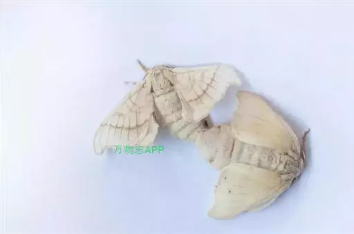 【动物形态】家蚕蛾雌雄蛾全身均密被白色鳞片。