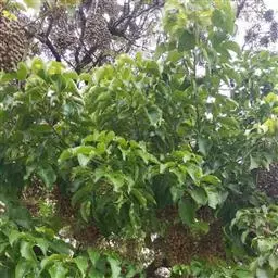 一般采用大田条播育苗。3月中旬,在播种前用50%多菌灵800倍液对苗床消毒,当种子胚根长到1cm时,开始播种。播种时,断去部分胚根,按行距20cm、株距9cm进行条播,播种量为30.0~37.5kg/hm。播后盖0.5cm厚的细土,淋透水,并搭建2m高的90%遮阳棚,以保证其幼苗不受日灼危害。播种行距约20cm,每亩播种量2~2.5kg。覆土厚约0.5厘米,上盖草。播后20~30天幼苗出土,发芽率40~80%。1年生苗高约50cm,最高可达1m以上。苗木主干下部易生侧枝,要及时剪去,使其在一定的高度分枝。移栽要掌握在芽萌动时带土球进行,这样成活率高。