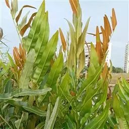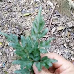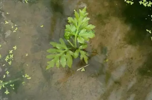 叶簇生,二型。不育叶的柄长3-40厘米,粗10-13厘米,绿色,圆柱形,肉质,不膨胀,上下几相等,光滑无毛,干后压扁;叶片直立或幼时漂浮,有时略短于能育叶,狭长圆形,长6-30厘米,宽3-15厘米,先端渐尖,基部圆楔形,二至四回羽状深裂,裂片5-8对,互生,斜展,彼此远离,下部1-2对羽片较大,长可达10厘米,宽可达6.5厘米,卵形或长圆形,先端渐尖,基部近圆形、心脏形或近平截,一至三回羽状深裂;小裂片2-5对,互生,斜展,彼此分开或接近,阔卵形或卵状三角形,长可达35厘米,宽可达3厘米,先端渐尖、急尖或圆纯,基部圆截形,有短柄,两侧有狭翅,下延于 水蕨 羽轴,深裂;末回裂片线形或线状披针形,长可达2厘米,宽可达6毫米,急尖头或圆钝头,基部均沿末回羽轴下延成阔翅,全缘,彼此疏离;第二对羽片距基部一对3-5厘米,向上各对羽片均与基部羽片同形而逐渐变小。能育叶的柄与不育叶的相同;叶片长圆形或卵状三角形,长15-40厘米,宽10-22厘米,先端渐尖,基部圆楔形或圆截形,二三回羽状深裂;羽片3-8对,互生,斜展,具柄,下部1-2对羽片最大,长可达14厘米,宽可达6厘米,卵形或长三角形,柄长可达2厘米;第二对羽片距第一对1.5-6厘米,向上各对羽片均逐渐变小,一至二回分裂;裂片狭线形,渐尖头,角果状,长可达1.5-4(6)厘米,宽不超过2毫米,边缘薄而透明,无色,强度反卷达于主脉,好像假囊群盖。主脉两侧的小脉联结成网状,网眼2-3行,为狭长的五角形或六角形,不具内藏小脉。叶干后为软草质,绿色,两面均无毛;叶轴及各回羽轴与叶柄同色,光滑。