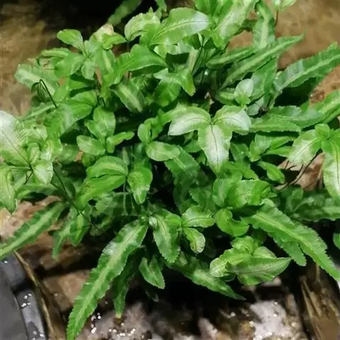 水蕨 自然情况下,水蕨通常生长在沼泽或水边沙石淤泥上。人工栽培时,需在水池或水缸底部先垫置一层富含腐殖质的淤泥,淤泥厚度以能盖住植株根部为准。种植好的植株必须保证有1/2以上的部位露出水面,种植前期为防止植株倒斜,可用石子压住植株根部。