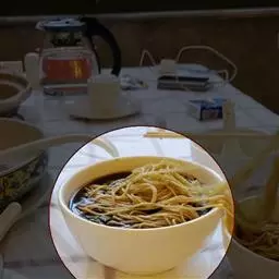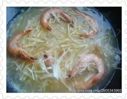 4. 把用温水泡软的粉丝放到扇贝上;