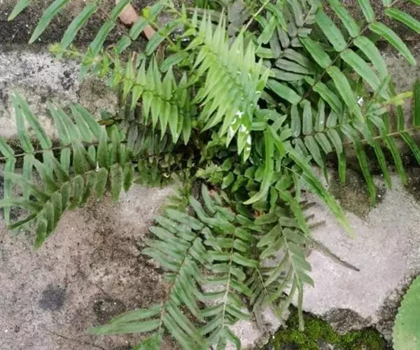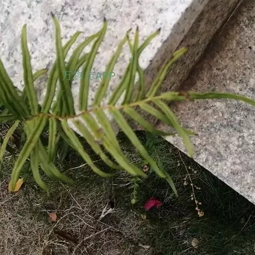 蜈蚣草(学名:Pteris vittata L.,)是凤尾蕨科,凤尾蕨属陆生蕨类植物。植株高可达150厘米。根状茎直立,短而粗健,木质,密蓬松的黄褐色鳞片。叶簇生;柄坚硬,深禾秆色至浅褐色,叶片倒披针状长圆形,一回羽状;顶生羽片与侧生羽片同形,互生或有时近对生,中部羽片最长,狭线形,不育的叶缘有微细而均匀的密锯齿,几乎全部羽片均能育。