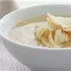 3、在高汤中加入一勺淀粉,在加入少许盐和白胡椒粉;将上面制作的高汤倒入锅中,煮至沸腾透明即可;