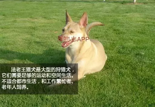 法老王猎犬(英文名称:Pharaoh Hound):是一种中型犬,整体外观是优雅,有力,速度快。法老王猎犬血统高贵,轮廓鲜明,线条优美。动作非常平稳、迅速、舒展、轻松,表情警惕。它出色的捕猎技巧以及与人之间的默契关系,是人们如今了解和研究犬类历史不可多得的财富与瑰宝。警惕而活跃,非常忠实而敏锐的优秀猎犬,视觉和嗅觉都很好。