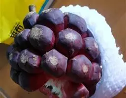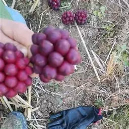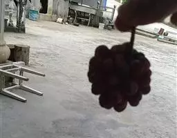 3、搭架:移植后第二年即应搭架。可用水泥柱或角钢做立柱,用木杆或8号铁线在立柱上部拉一横线,每个主蔓处立一竹杆或木杆,竹杆高2.5—3米,直径1.5—5厘米,用绑线固定在横线上,然后引蔓上架,开始时可用强绑,之后即自然缠绕上架。