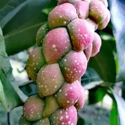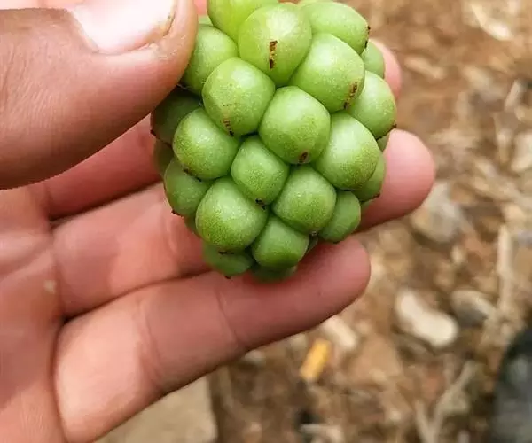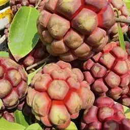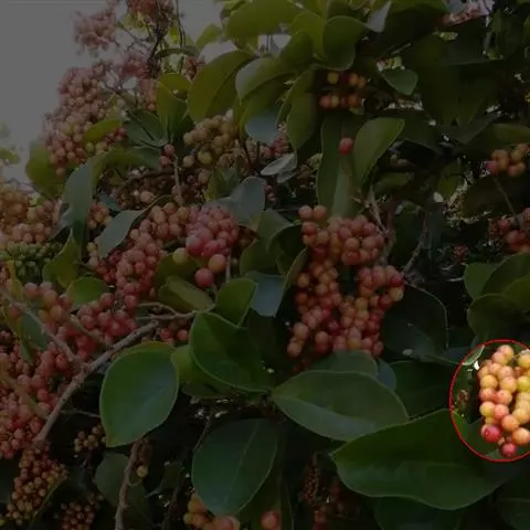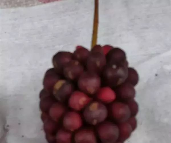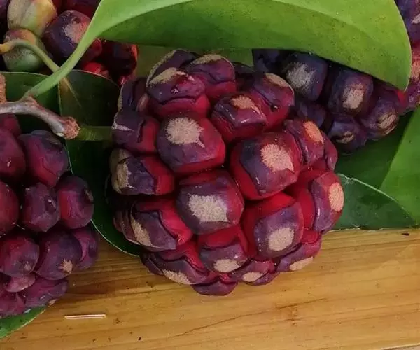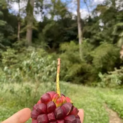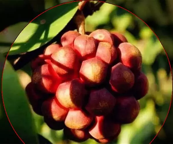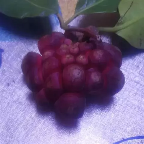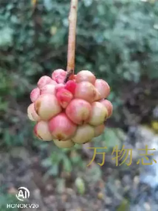 聚合果球形,径1.5-3.5厘米;小浆果倒卵圆形,长8-14毫米,外果皮薄革质,干时显出种子。种子2-3,稀4-5,肾形或肾状椭圆体形,长4-6毫米,宽3-5毫米。