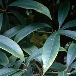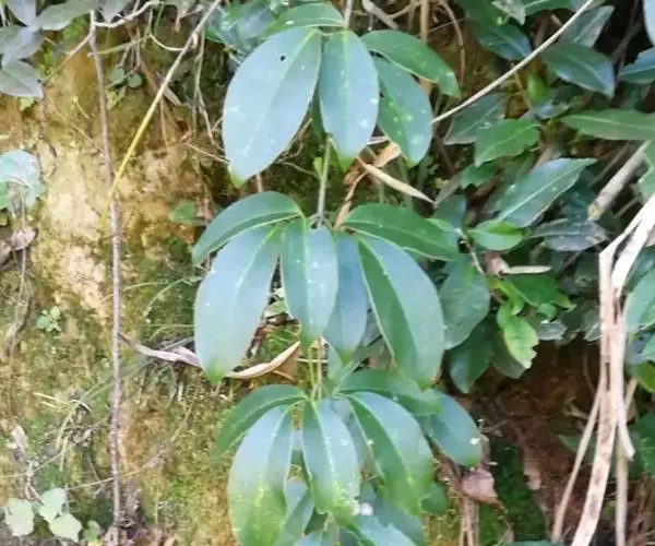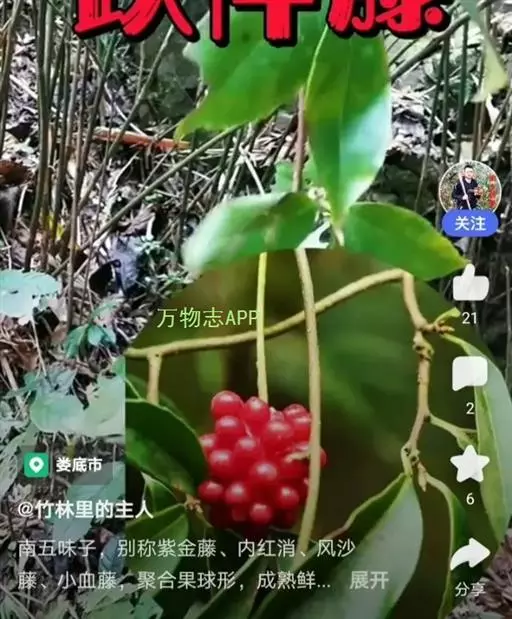 南五味子系藤本植物,各部无毛。叶长圆状披针形、倒卵状披针形或卵状长圆形,长5-13厘米,宽2-6厘米, 南五味子 先端渐尖或尖,基部狭楔形或宽楔形,边有疏齿,侧脉每边5-7条;上面具淡褐色透明腺点,叶柄长0.6-2.5厘米。