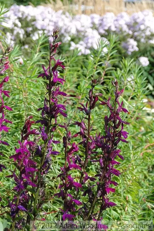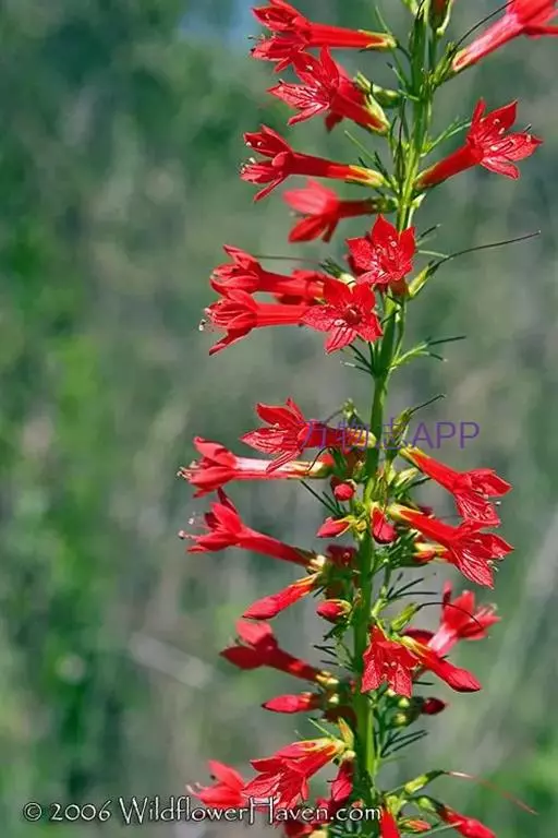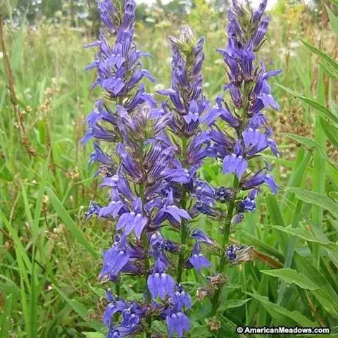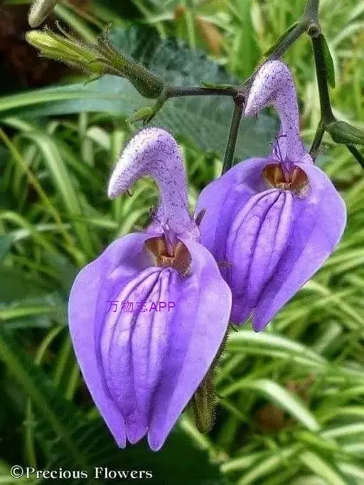 多年生草本,高60-120厘米。根状茎直立,生多数须根。茎圆柱状,通常不分枝,无毛。叶螺旋状排列,在茎的中上部,较密集;无柄;叶片厚纸质,宽披针形至条状披针形,长2.5-5.5厘米,宽3-16毫米,先端渐尖,基部近圆形至阔楔形,两面无毛,边缘有细锯齿。总状花序顶生,长8-35厘米,无毛;苞片叶状,窄披针形,比花短;花梗长5-12毫米,花萼筒杯状钟形,长约4毫米,无毛,裂片三角状披针形,长5-7毫米,宽约2毫米,全缘,无毛;花冠蓝紫色,长2.5-3厘米,近二唇形,外面无毛,内面具长柔毛,上唇2裂长匙形,下唇3裂片椭圆形,裂片边缘密被睫毛;雄蕊在基部以上连合成筒,花丝筒无毛,花药结合线上密被柔毛,仅下方2枚花药先端具笔毛状髯毛。蒴果倒卵形。种子近半圆形,棕红色。花、果期7-9月。