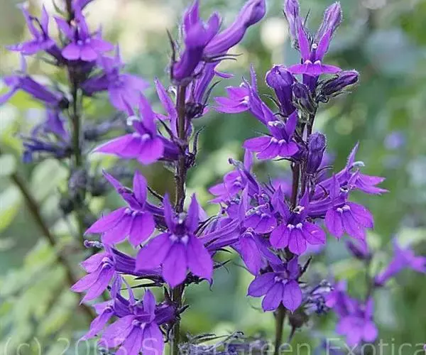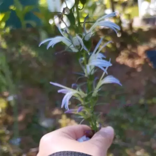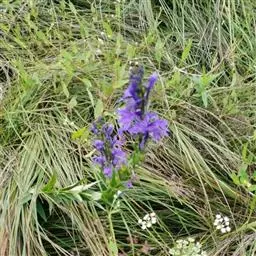 药材性状:根茎较粗壮,具多数白色细须根。茎直立。单叶互生,披针形,先端尖,边缘具细锯齿。总状花序生茎顶端,花萼钟状5裂;花冠深蓝色,近二唇形,上唇2全裂,下唇3裂,裂片长圆形,边缘密生白色缘毛。有时可见小蒴果。气微,味微苦。
