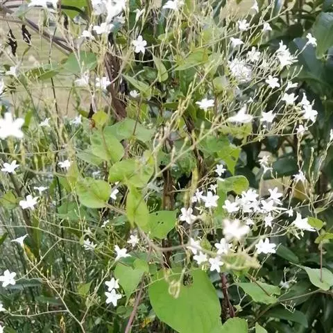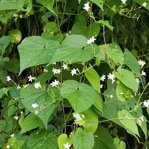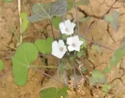 描述: 攀援灌木,茎缠绕,小枝近圆柱形,短,极无毛。叶宽卵状心形,长6-8厘米,宽4.5-6厘米,先端渐尖或骤渐尖,基部深心形,两面无毛,背面苍白色,基出脉7,侧脉1-2对,侧脉及网脉密生小瘤点;叶柄纤细,较叶片短2倍,长3-4厘米,无毛,具槽。苞叶,极小或逐渐缩小,长4-2厘米,宽25-10毫米,与叶同形,柄长20-3毫米。花序腋生,为总状花序或圆锥花序,总梗细,无毛,具白色小瘤点;花梗纤细,长1-2厘米,顶端或近顶端具2-3小苞片,基部具苞片,小苞片较萼片小2-3倍,狭,长0.5-1.5毫米;萼片线形,锐尖,近等长,长3-4毫米,背面极无毛,果熟时3个极增大,长圆形,先端钝且具小尖头,带紫色,长2.5-3厘米,宽1.3厘米,干膜质,具8-9条纵贯的脉,及具细网脉,两面均明显。花冠狭漏斗形,长25-30毫米,白色,先端骤然开展,冠檐浅裂,裂片圆形,顶端微缺,具小短尖头;雄蕊着生于花冠管中下部,3列,花丝近于无,长1-2毫米,既不扩大,也不具乳突;花药长圆状心形,长约2毫米;子房球状,无毛,1室,2胚珠;花柱短,长2-5毫米,柱头棒状,长约0.6毫米。蒴果球形,紫红色。种子1。
