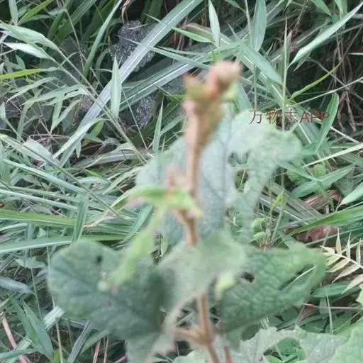 单叶,心状长卵形,长7- 14厘米,宽5-11厘米,上面无毛或沿叶脉疏生柔毛,有明显皱纹,下面密被锈色绒毛,沿叶脉有长柔毛,边缘3-5裂,有不整齐的粗锯齿或重锯齿,基部心形,顶生裂片长大,披针形或卵状披针形,比侧生裂片长很多,裂片顶端钝或近急尖;叶柄长2.5-5厘米,被绒毛并有稀疏小皮刺;托叶宽倒卵形,长宽各约1-1.4厘米,被长柔毛,梳齿状或不规则掌状分裂,裂片披针形或线状披针形。