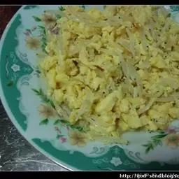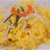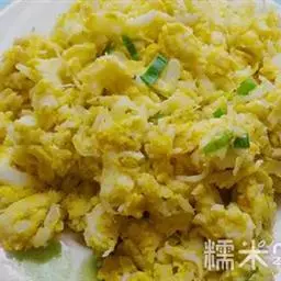 3.锅里热油,倒入鸡蛋液,差不多凝固的时候,划散翻炒一会儿,然后盛起来备用