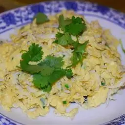 主料:鸡蛋150克,韭黄150克 韭黄炒蛋 调料:花生油50克,盐3克,白砂糖5克