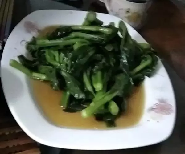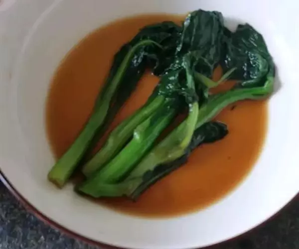 白灼菜心 调味料:调和油、蚝油1又1/2大勺、鲜味汁1大勺、高汤1/4杯、水淀粉、盐少量、鸡精。