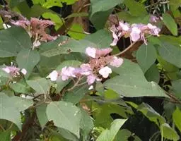 蜡莲绣球(学名:Hydrangea strigosa Rehd.),是虎耳草科、绣球属灌木。小枝圆柱形或微具四钝棱,灰褐色。叶纸质,长圆形、卵状披针形或倒卵状倒披针形;中脉粗壮,上面平坦,下面隆起,侧脉弯拱,沿边缘长延伸,上面平坦;叶柄长被糙伏毛。伞房状聚伞花序大,;不育花萼片4-5,阔卵形、阔椭圆形或近圆形;孕性花淡紫红色,萼筒钟状;花瓣长卵形。蒴果坛状,顶端截平,基部圆;种子褐色,阔椭圆形,具纵脉纹,先端的翅宽而扁平,基部的收狭呈短柄状。花期7-8月,果期11-12月。