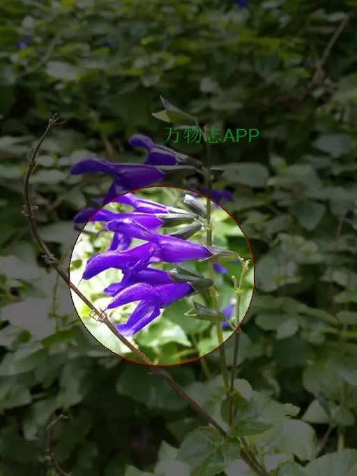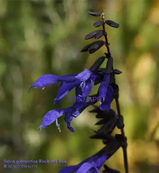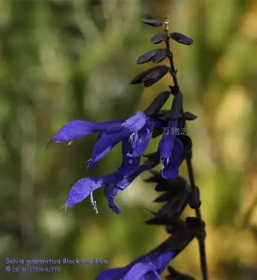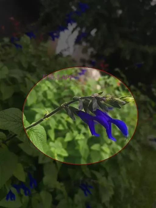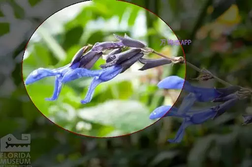 花: 腋生,深蓝色,比其它鼠尾草花大。