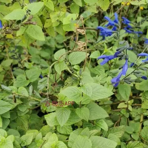原产北美南部,现我国各地均有栽培。多年生草本;分枝多,株形高,可达1.5米以上。叶对生,卵圆形,全缘或具钝锯齿,色灰绿,质地厚,叶表有凹凸状织纹;含挥发油,具强烈芳香,能吸引蜂蝶。花深蓝色,比其它鼠尾草花大