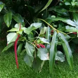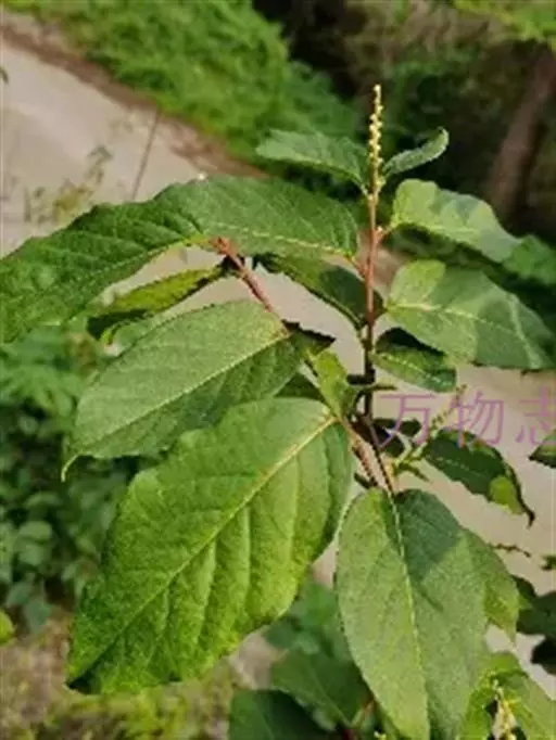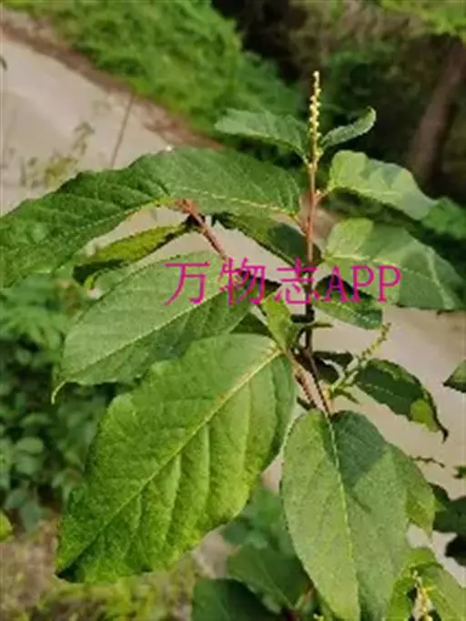 灌木或乔木,高1-8米,各部均无毛;枝纤细,平滑。带灰褐色。叶互生,纸质,叶卵形、卵状长方形或椭圆形,长7-16厘米,宽4-8厘米,顶端短尖或凸尖,基部钝、截平或有时呈微心形,两侧常不等,全缘,背面中上部常于近边缘的脉上有散生的腺体,基部靠近中脉之两侧亦具2腺体;中脉在背面显著凸起,侧脉8-10对,斜上举,离缘3-5毫米弯拱网结,网状脉明显,网眼小;叶柄长1.5-3厘米,两侧薄,呈狭翅状,顶端无腺体;托叶膜质,线状披针形,长约1厘米。花单性,雌雄同株常同序,聚集成顶生,长4.5-11厘米的纤细总状花序,雌花数朵生于花序轴基部,雄花数朵生于花序轴上部,有时整个花序全为雄花。