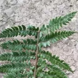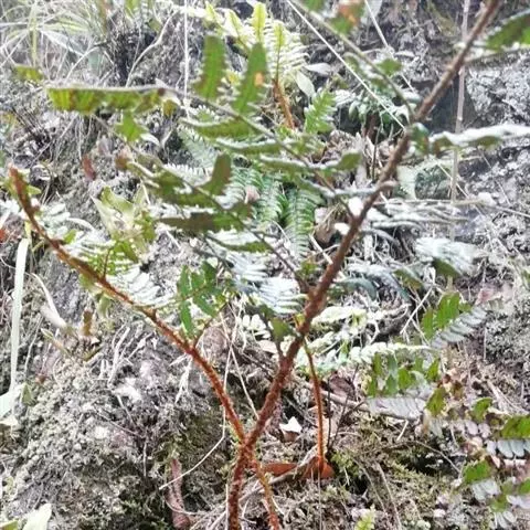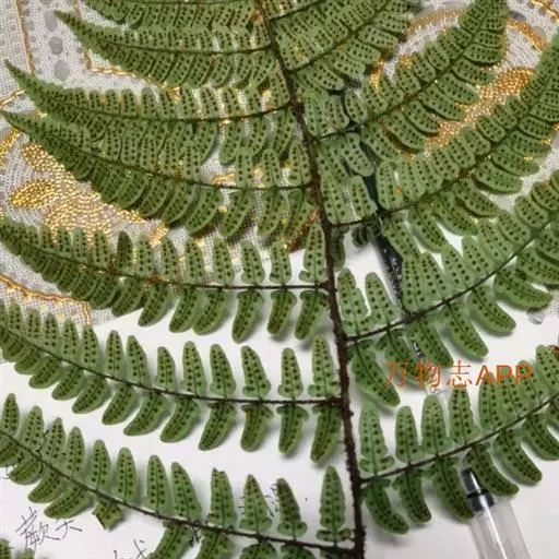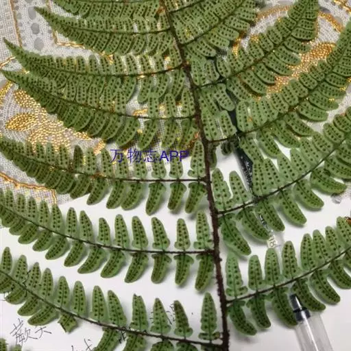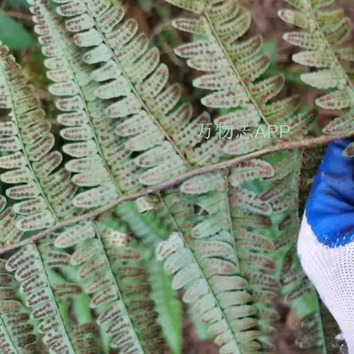陆生中型蕨植物。 株高约50-80厘米。根状茎横卧或斜升,顶端及叶柄基部密被披针形、棕色、全缘的鳞片。叶簇生;叶柄长约30-40厘米,粗达4-5毫米,禾秆色,密被鳞片;鳞片阔披针形,顶端渐尖,边缘有尖齿;叶片卵状披针形,长约40-60厘米,宽约20-30厘米,二回羽状,小羽片羽状浅裂或深裂;羽片约10-15对,基部的近对生,上部互生,卵状披针形,基部略收缩,顶端斜向叶尖,小羽片约10-13对,披针形,长约2-3厘米,基部浅心形至阔楔形,具短柄,顶端钝圆并具细尖齿,边缘羽状浅裂至羽状深裂,基部一对裂片明显最大而使小羽片基部最宽;裂片圆钝头,顶端具尖齿。侧脉羽状,在叶片下面明显可见。叶轴密被基部阔披针形,顶端毛状渐尖,边缘有细齿的棕色鳞片,羽轴具有较密的泡状鳞片。叶草质,干后褐绿色,孢子囊群大,在小羽片中脉两侧或裂片两侧各一行,位于中脉与边缘之间或略靠近边缘着生;囊群盖圆肾形,全缘。