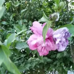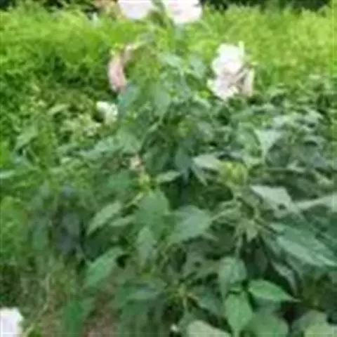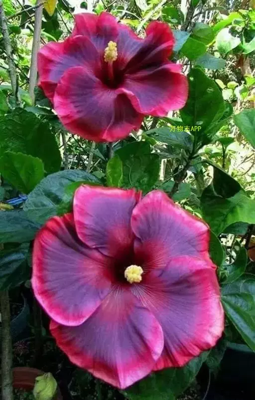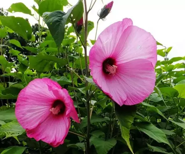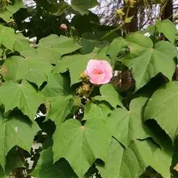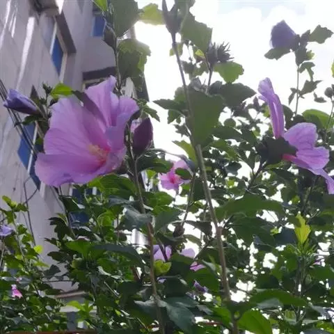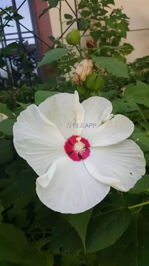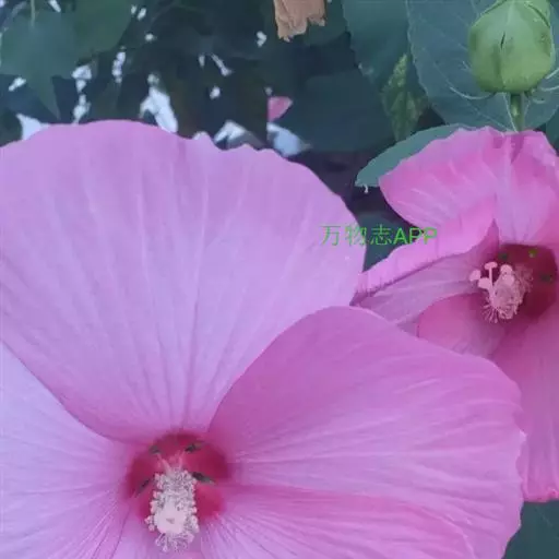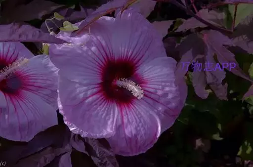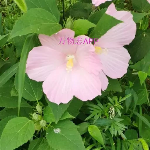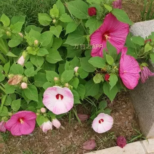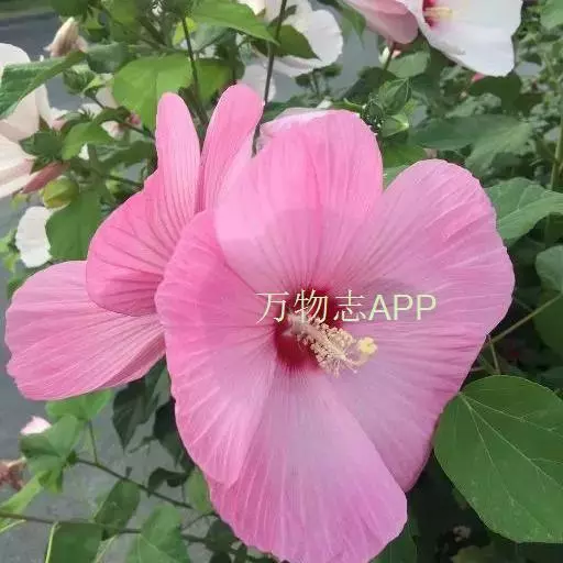 落叶灌木状。叶大、广卵形,叶柄、叶背密生灰色星状毛。花大,单生于叶腋,有白、粉、红、紫等色。