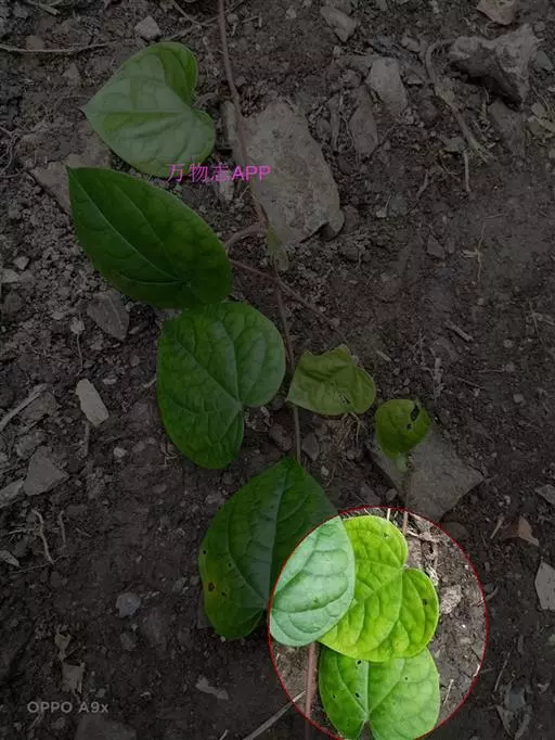 叶片卵形或近圆形,长3-9厘米,宽2-8厘米,顶端渐尖,基部微心形或圆形,下延成柄,全缘,背面叶脉微凸起;叶柄长1-3厘米,上有凹槽。